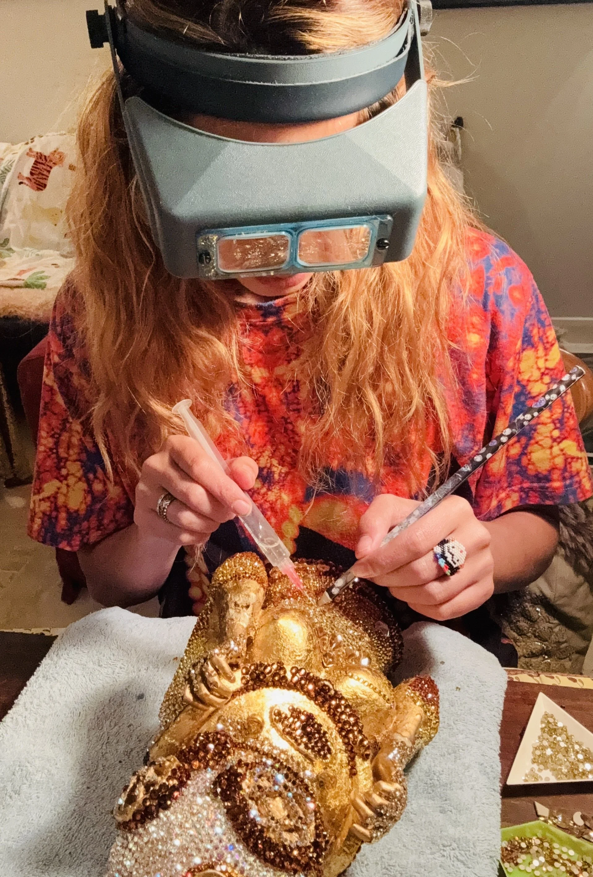 The act of art making calms the chaos which shakes my soul; presently there is great change upon our planet and I humbly artwork by artwork am attempting to create a more illuminated world through my art practice. The act of art making has the power to transform, illuminate, educate, inspire and motivate us all into a new way of being in the world, may that world be beautiful and full of wonder’